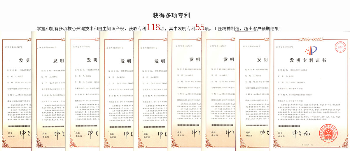 結(jié)構(gòu)較簡(jiǎn)單,操作容易,運(yùn)行穩(wěn)定,保養(yǎng)方便;過(guò)濾面積選擇范圍靈活,占地少;對(duì)物料適應(yīng)性強(qiáng), 效率高,含水率低,適用于各行各業(yè)物料脫水處理。現(xiàn)已應(yīng)用于市政、礦山、紙業(yè)等多個(gè)大型固廢脫水處理行業(yè)。設(shè)備使用簡(jiǎn)單,操作安全,維護(hù)方便,是理想的固液分離設(shè)備。專(zhuān)利技術(shù)(專(zhuān)利類(lèi)型:發(fā)明,專(zhuān)利號(hào):CN104260402A),圓形濾板,濾板面結(jié)構(gòu)自主知識(shí)產(chǎn)權(quán)設(shè)計(jì),使用壽命長(zhǎng),密封性強(qiáng),不噴漿,耐高壓,過(guò)濾效果好,濾餅含固高。